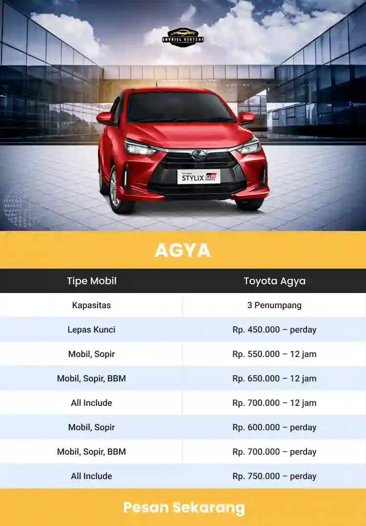 Berbicara tentang harga, tenang saja, kami punya penawaran sewa mobil terbaik dengan harga yang bersahabat. Tidak perlu takut dompet bolong dan terancam tidak bisa melanjutkan perjalanan, kami menjamin harga yang ditawarkan cukup terjangkau.