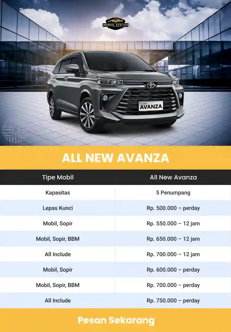 Garvriel Rentcar bisa Anda manfaatkan sebagai tempat sewa terpercaya. Tidak hanya menawarkan paket sewa yang beragam kami juga punya pelayanan prima yang membuat perjalanan Anda semakin nyaman.