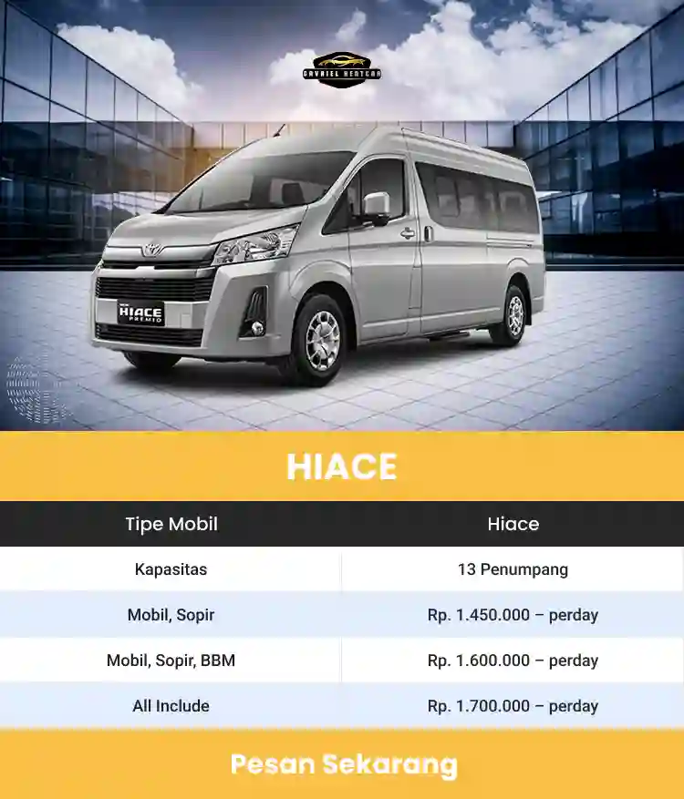 Penyesuaian armada sewa mobil Jakarta dan sewa hiace jakarta bisa dilakukan berdasar jumlah orang yang akan ikut dalam perjalanan. Tapi tidak menutup kemungkinan Anda bisa menyesuaikan kendaraan berdasar keinginan pribadi terlepas jadi jumlah orang yang akan pergi.